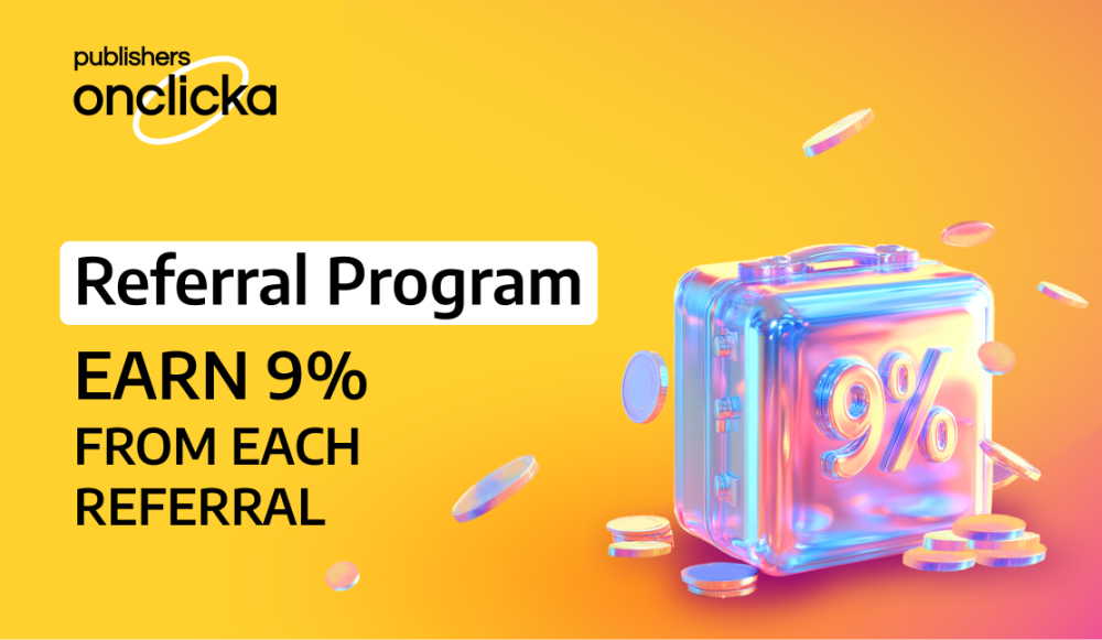 Earn 9% with OnClickA’s Publishers Referral Program! Whether you're a website/app publisher or a Telegram Mini App owner, OnClickA’s referral program gives you a great way to boost your earnings. Get 9% commission from every referral you bring! Why Choose This Program? 9% Commission: Earn a solid 9% for every new publisher you refer. Lifetime Earnings: Keep earning as long as your referrals stay active. No Limits: Refer as many publishers as you like—your earnings have no cap. For All Publishers: Whether you manage websites, apps, or Telegram Mini Apps, this program works for everyone. How It Works: Sign Up: Create an account on OnClickA. Get Your Link: Find your referral link in your dashboard. Share: Post your link on websites, social media, or share it directly. Earn: Get 9% of revenue generated by each referral. Withdraw: Track and withdraw your earnings anytime. Maximize Your Income with Telegram Mini Apps: OnClickA now offers Telegram Mini App Ads—monetize through rewarded posts, videos, and banners. Referring Telegram Mini App owners can boost your earnings even more! Ready to Earn? Start today by joining the OnClickA Publishers Referral Program! Sign up for publishers