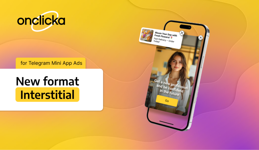 Telegram Mini Apps are available at OnClickA We're excited to announce that OnClickA launched advertising in Telegram Mini Apps! Now you can set up campaigns through our advertising platform directly from your personal account. If you would like to know how to get started, сheck out our step-by-step guide to set up your ad campaign through OnClickA and start earning today! 👉 Read the guide Why are Telegram Mini Apps the perfect place for your ads? Both advertisers and publishers can take advantage of OnClicka's platform for all their Telegram Mini Apps advertising needs. Here's what we provide: For Advertisers: Automated ad launch – start your campaigns effortlessly with auto-setup Advanced ad formats: You'll find 4 dynamic formats available: Rewarded ads (video or post) Banner Advertising Interstitial ads In-page ads Precise targeting – reach your audience with top-tier, relevant traffic. Multiple GEO options RTB system – connect to RTB and let ad networks bid in real-time to buy traffic directly in mini-apps For Publishers: Seamless monetization – we take care of the automation, so you can enjoy a smooth and worry-free way to earn Targeted traffic – attract advertisers with tailored traffic Flexibility and control – customize ad categories, display locations, and daily payouts Higher Revenue – maximize your income with performance-based results Don't miss out on the chance to experience the full benefits of advertising in Telegram Mini Apps. Сlick the button below to start advertising and monetizing Telegram Mini Apps today! > START ADVERTISING <